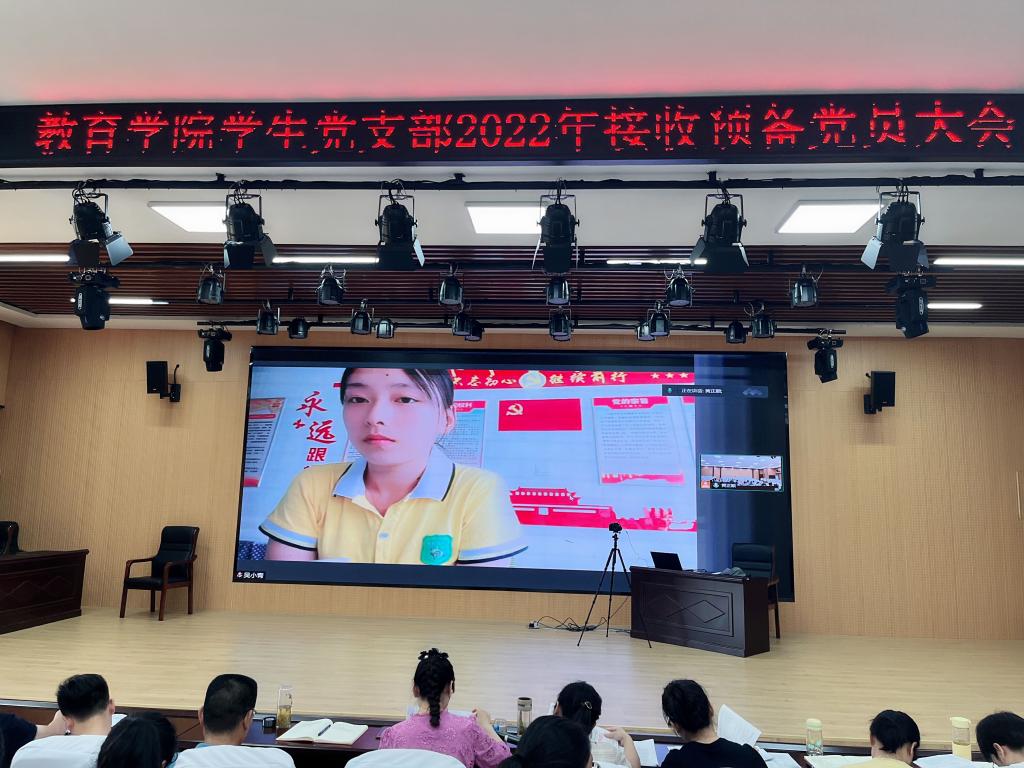 为进一步加强支部党组织建设,推进支部党员发展工作,教育学院学生党支部于6月7日下午依托“腾讯会议”采取“线上线下”相结合的方式在C2北1102召开接收预备党员大会。会议由学生党支部书记徐立娟主持,支部全体党员及王暄等44名发展党员参加了此次会议。会议严格按照党组织接收预备党员程序,党支部书记徐立娟宣布大会开始,王暄、刘文君等44名发展对象逐一宣读《入党志愿书》,从自己对党的认识、入党动机、本人履历等个人情...