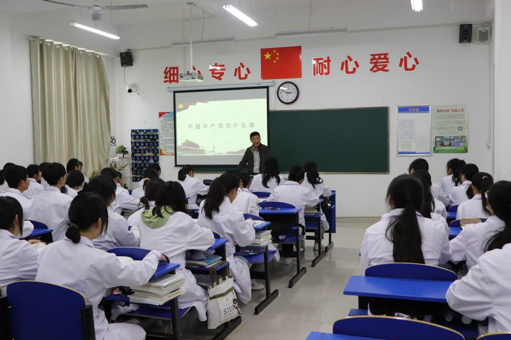 为切实贯彻落实全国高校思想政治工作会议精神,推进思想政治理论课改革创新,推动党史教育入脑入心。5月6日下午,党委书记米德成来到护理系为2020级学生讲授“形势与政策”课一一中国共产党为什么“能”。米德成以中国共产党发展的百年历史为出发点,从科学的理论指导、坚定的理想信念、强大的组织优势、坚实的群众基础和彻底的自我革命等五个方面,详细阐述了我们党之所以能从一艘小小红船成长为巍巍巨轮,历经百年风雨,从小...