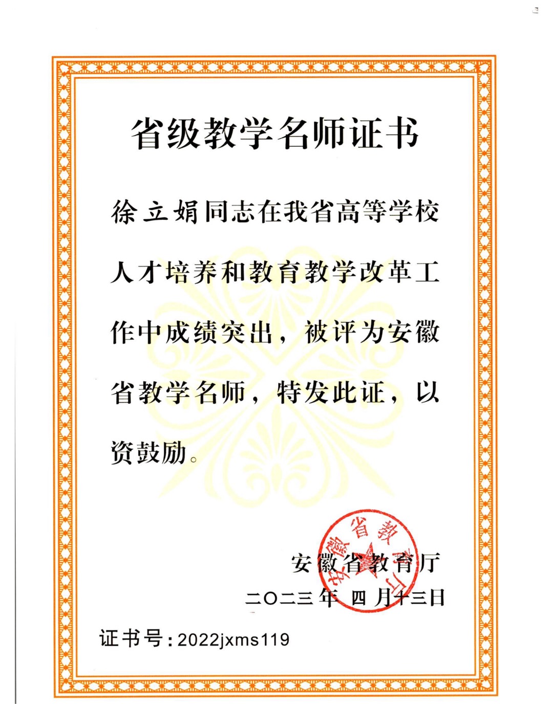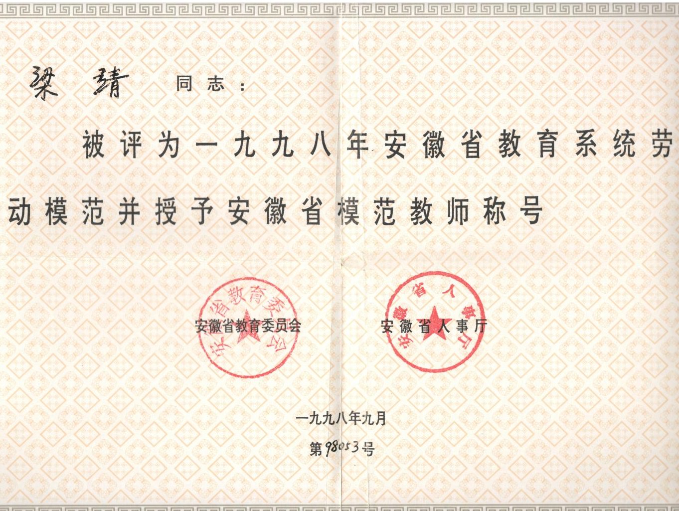 安徽省优秀教师