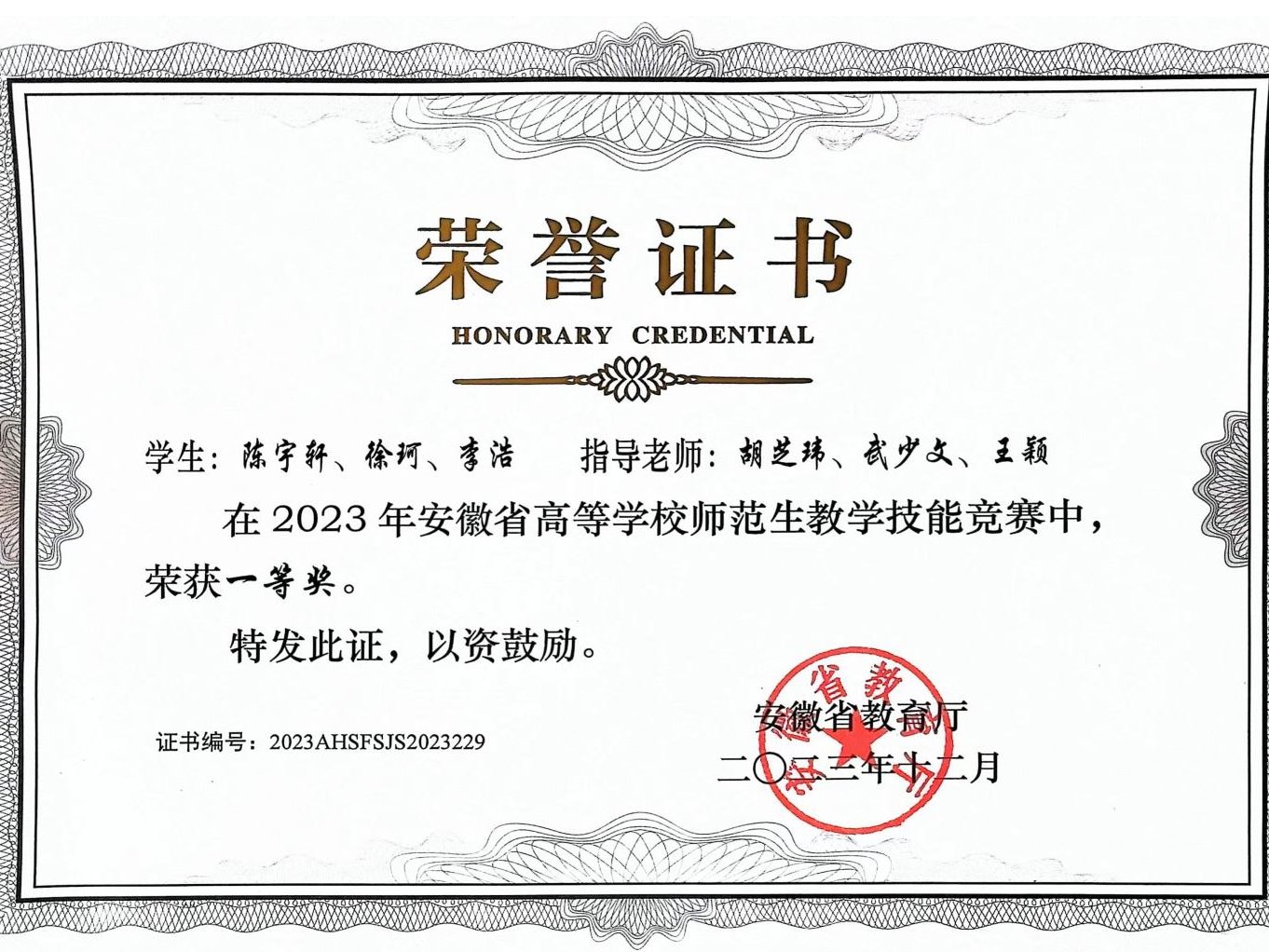 安徽省教学成果奖