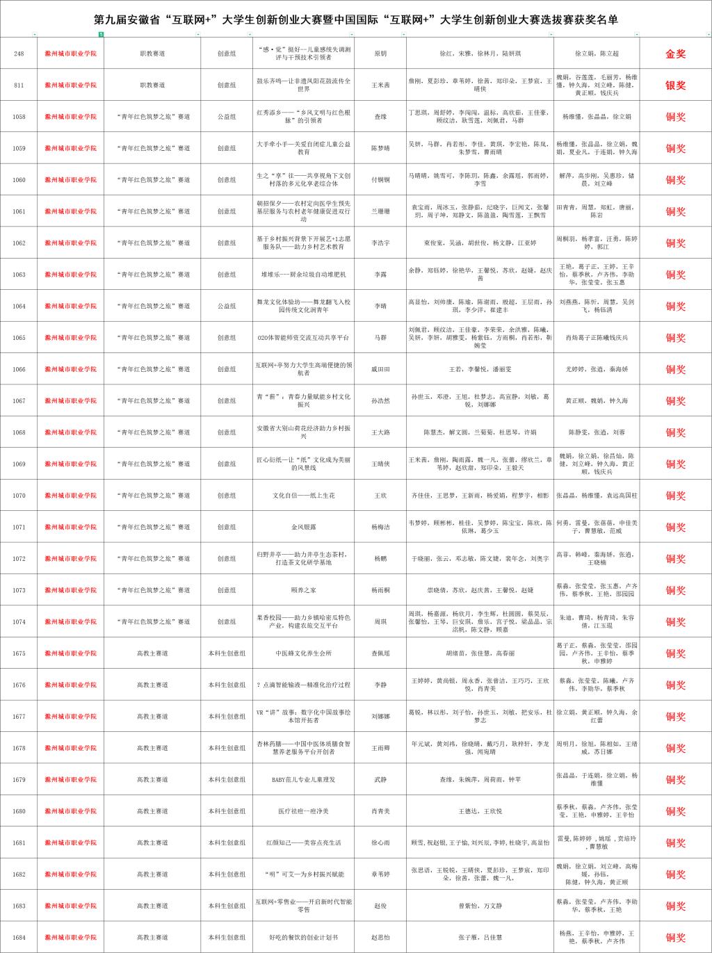 我校在第九届安徽省“互联网+”大学生创新创业大赛中 喜获佳绩