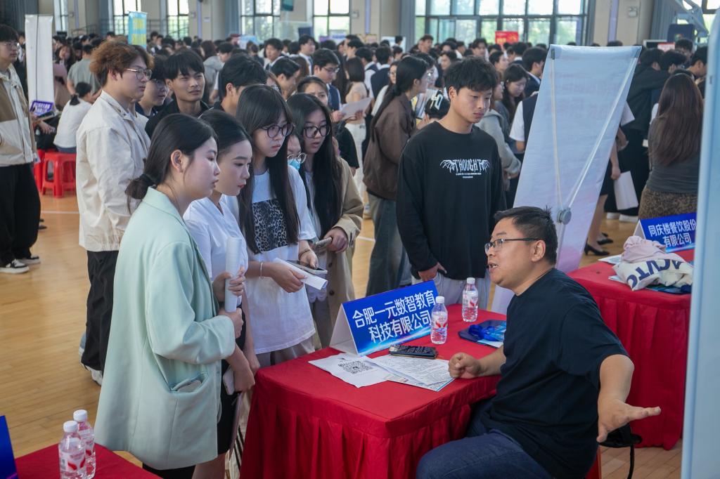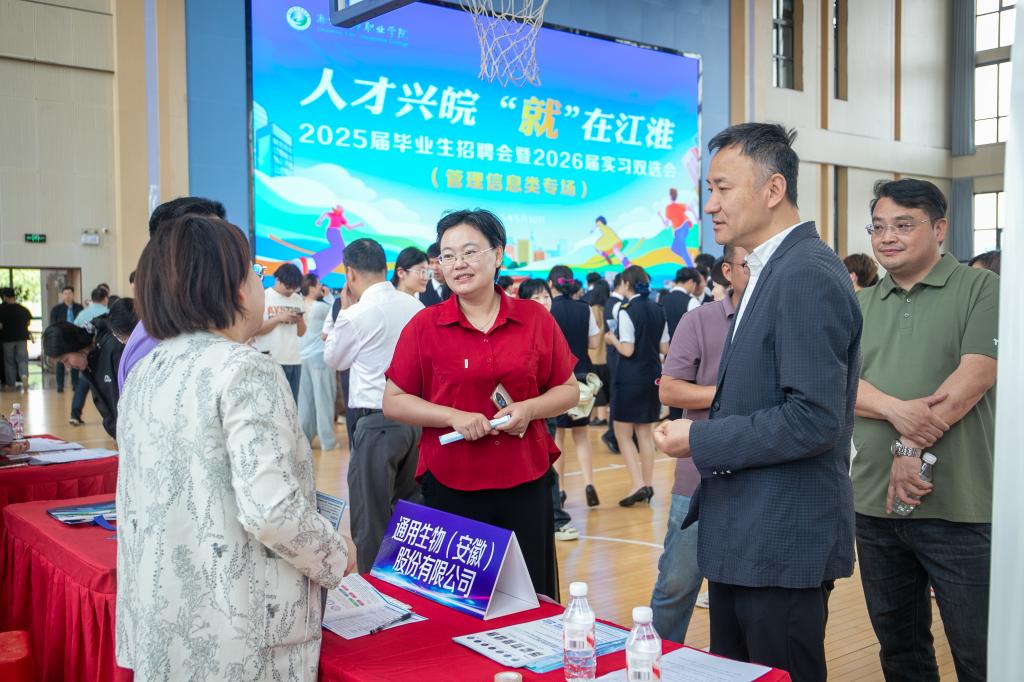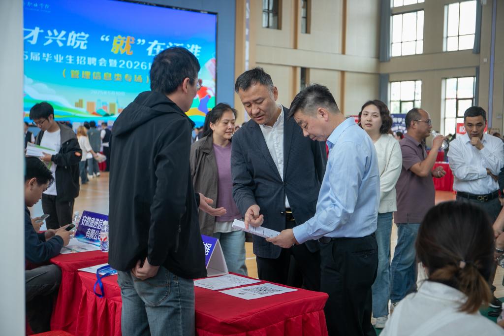 为贯彻落实教育部关于2025届毕业生就业工作的总体部署,5月10日,“人才兴皖,‘就’在江淮”管理信息类2025届毕业生招聘会暨2026届实习双选会在学校体育馆隆重举行。本次活动通过搭建政校企协同育人平台,精准对接区域经济发展需求,为大数据技术、交通运营管理、人工智能技术运用等9个专业的毕业生与实习生搭建起优质就业与实习通道。