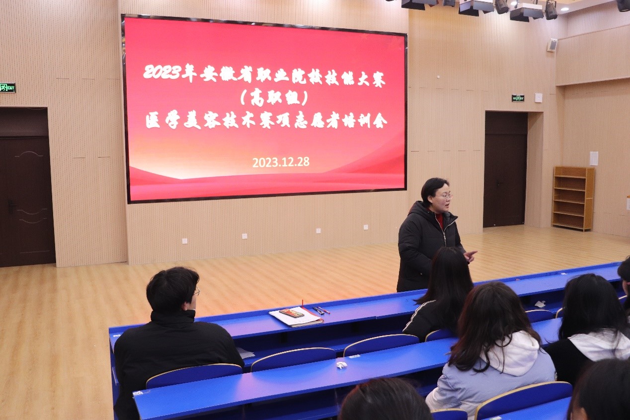 为了保障2023年“中银杯”安徽省职业院校技能大赛(高职组)医学美容技术赛项顺利开展,更全面服务全省各参赛高校,展示医学院青年志愿者积极向上、阳光热情的精神面貌,12月28日,医学院团总支为大赛志愿者组织了赛前专场动员培训会。